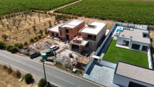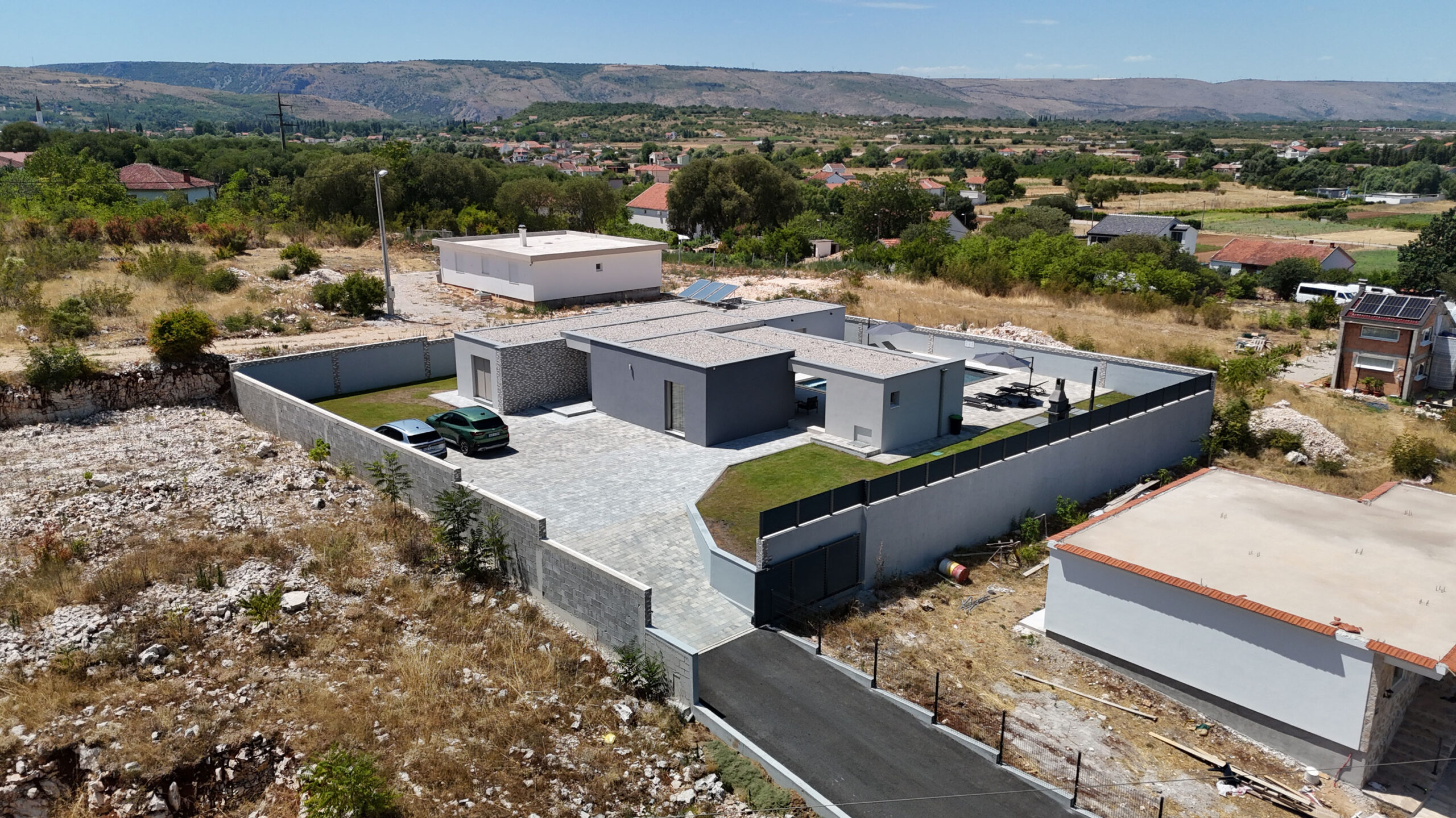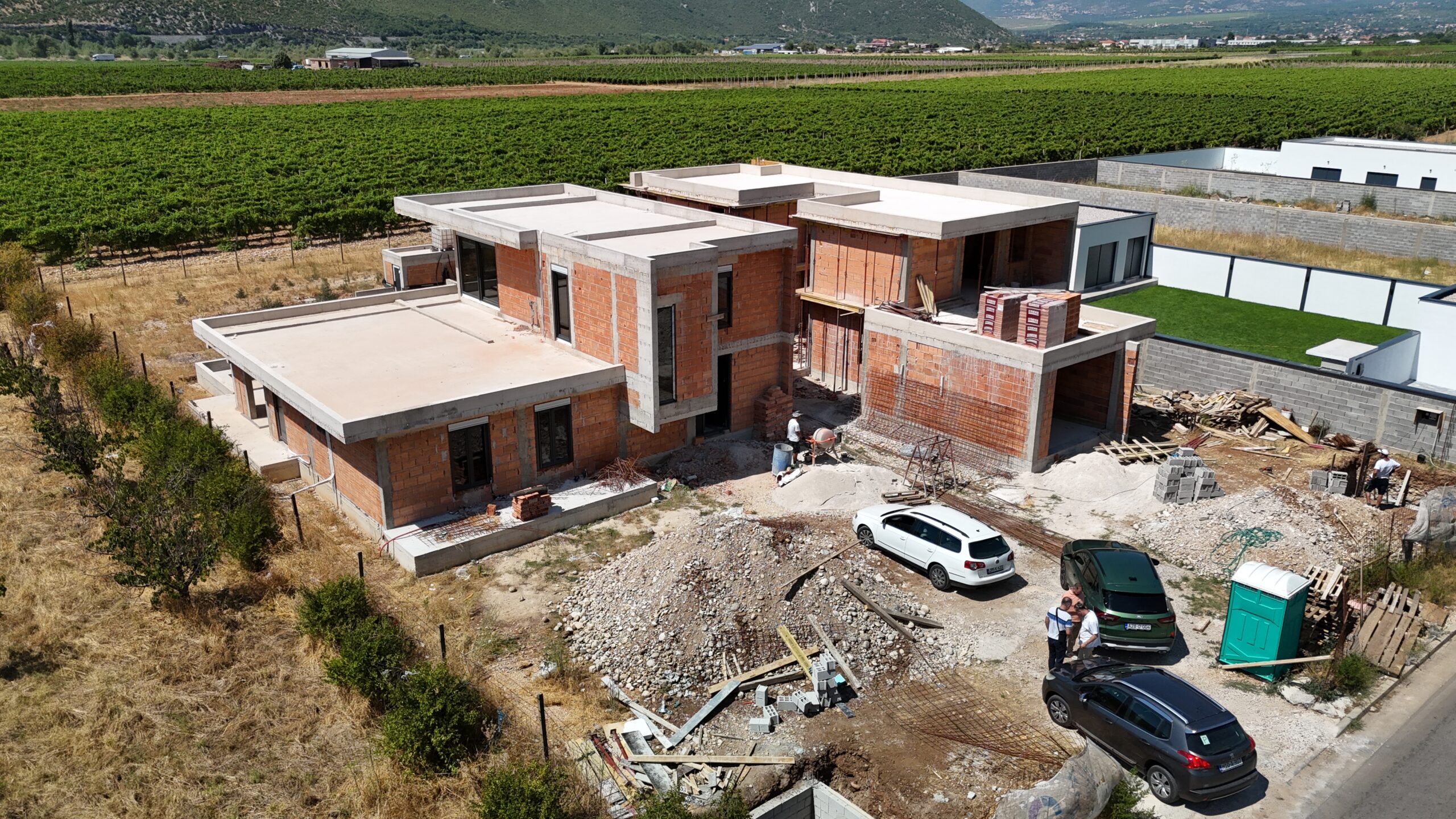 U naselju Vrapčići, na području Mostara, u toku je realizacija značajnog građevinskog projekta koji obuhvata izgradnju dvije moderne vile na jednoj parceli. Investitor je kompletnu realizaciju – od projektovanja do izvođenja završnih radova – povjerio kompaniji Adapt12, kao pouzdanom partneru sa iskustvom u realizaciji zahtjevnih objekata. Objekti su projektovani u savremenom arhitektonskom stilu, s naglaskom na funkcionalnost, energetsku efikasnost i dugotrajnost. Dvije vile, pozicionirane jedna pored druge, oblikovane su kao zasebne stambene cjeline koje pružaju visok nivo privatnosti, komfora i kvaliteta stanovanja. Svaka od njih posjedovati će vlastiti bazen (ukupno dva bazena na jednoj parceli).